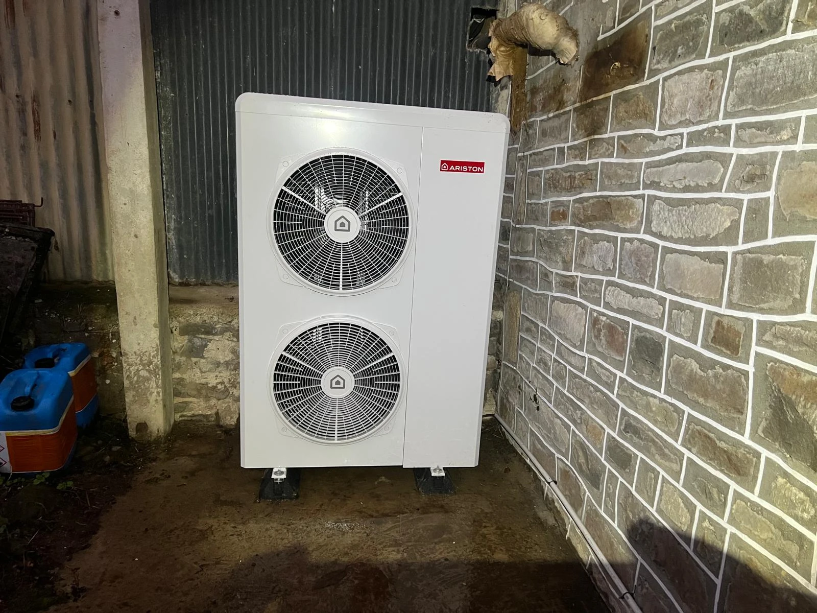 Après le retrait de l’ancien équipement, l’installation de la pompe à chaleur air-eau Ariston peut être réalisée.